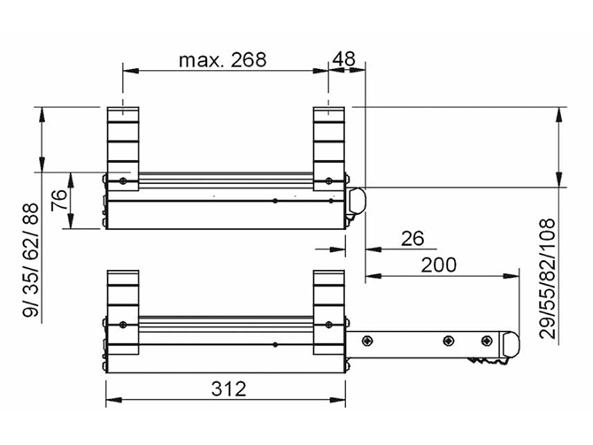 一般房車中門建議使用700寬度的踏步,前門使用400寬度的踏步,踏步標(biāo)配為電動(dòng)手按開(kāi)關(guān)。